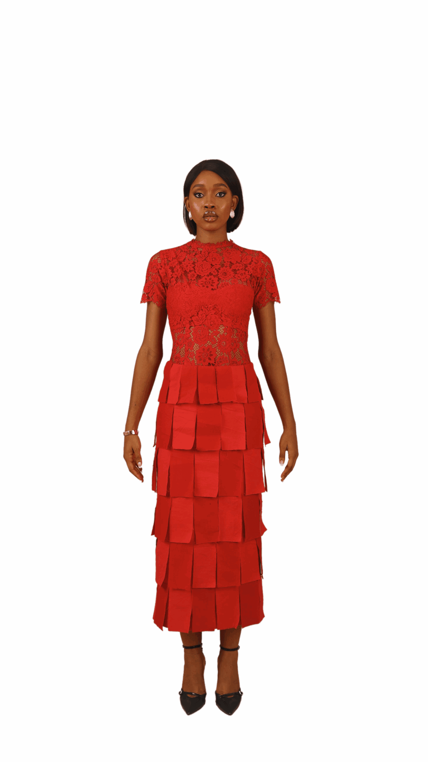 Reimagine summer style with the Merri dress, a modern classic redefined. This elegant piece, crafted from a superior blend of lace, cotton, and polyester, boasts a flattering high neckline and chic short sleeves. The intricate details of layers of fabric patch adds a touch of understated artistry. A statement piece, perfect for days when you want to be the star of the show.